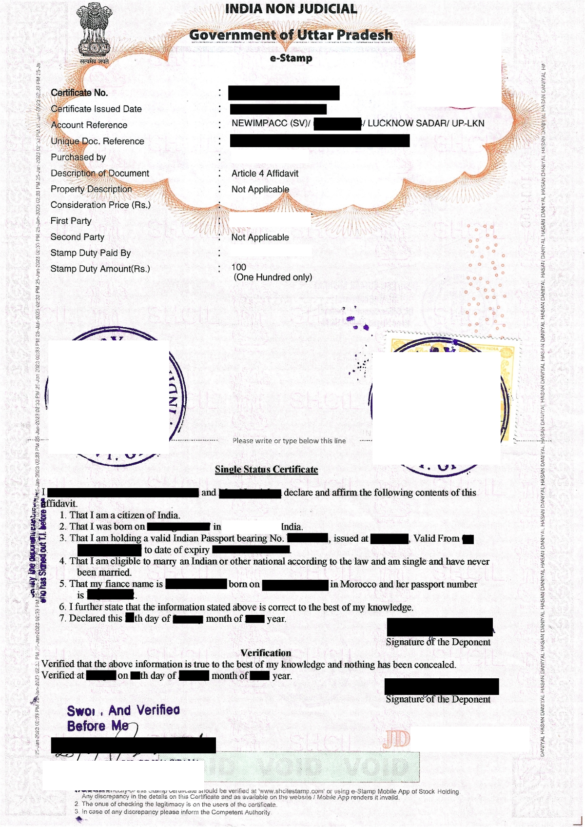 - Visit a notary or advocate in India to draft an affidavit stating you are unmarried.
